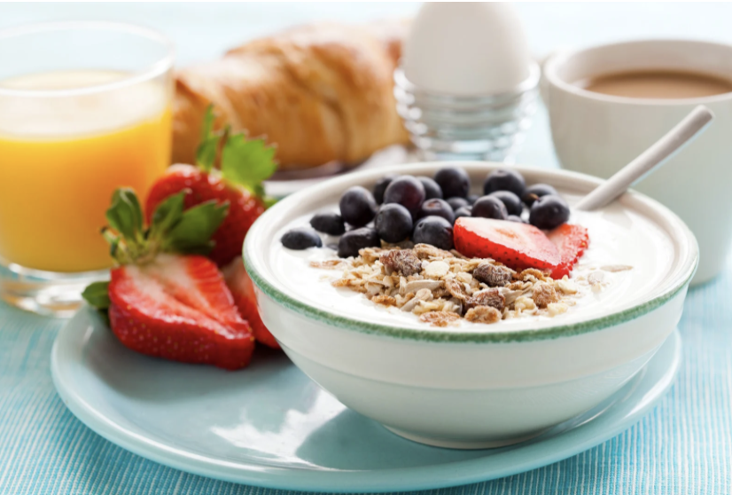 in protein to start your morning off, then a natural carbohydrate mid morning to keep your